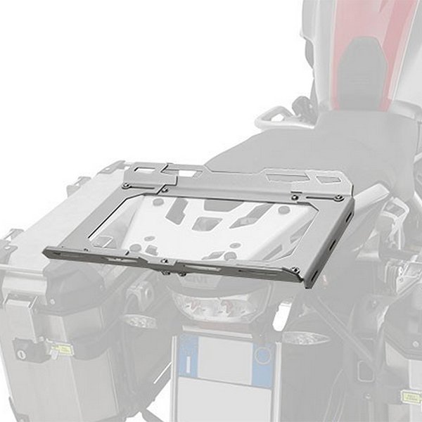 The EX1SRA Expandable Bag Plate, is designed by GIVI, to fit onto existing MONOKEY aluminium mounting plates, or SRA_ _ _ rear rack fitting kits.