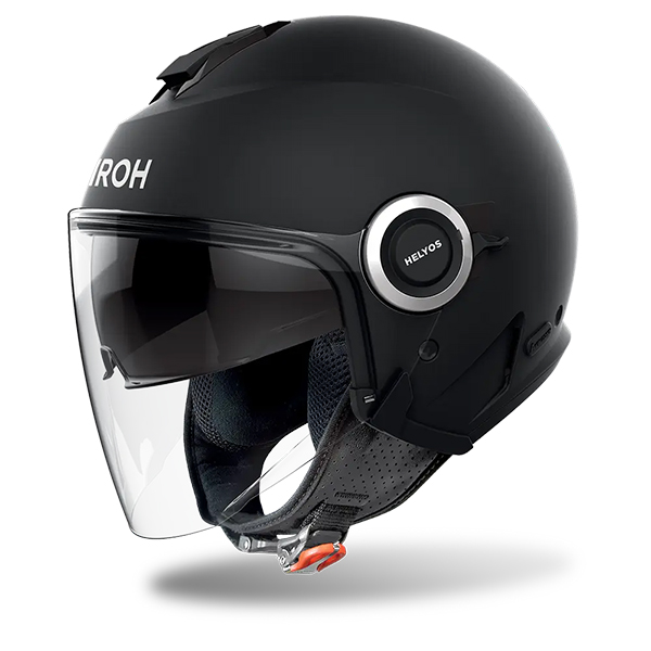 The Helyos Matt Black Helmet, is manufactured by AIROH, represents the evolution of the open helmet. demanding users in terms of comfort and style. An innovative custom kit is included in the package, so it lets you use Helios without visor for a modern classic look.