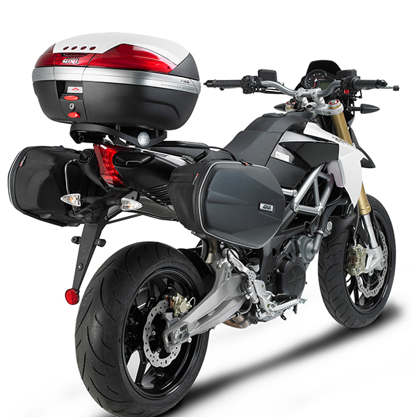 The TE6700 Aprilia Pannier Holder, is designed by GIVI, so it allows you to mount the EASYLOCK or SOFT LUGGAGE Side Bags by attaching this set of brackets, that bolt up to the subframe.